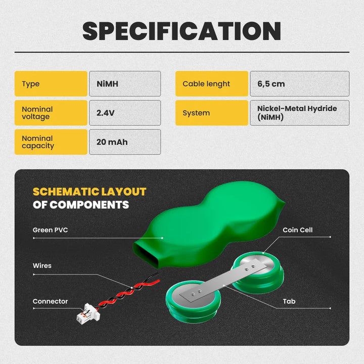 Replacement RTC CMOS Battery for Varta (Part Number) S121B 2/V15H