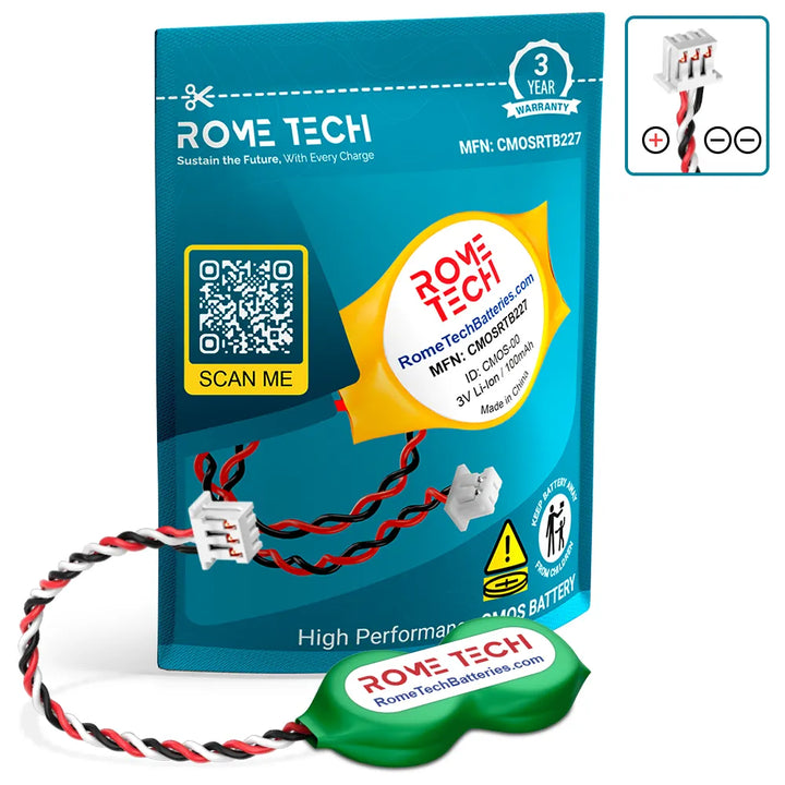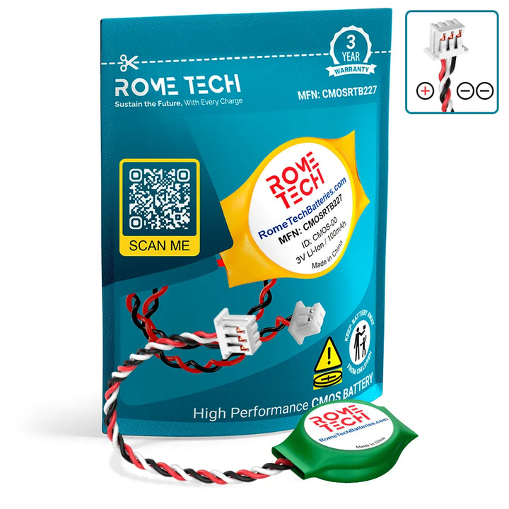 The Rome Tech motherboard battery is excellent for replacing a dead OEM battery. High-quality materials and workmanship guarantee a long service life, even under extreme conditions. As a result, our battery is an ideal choice for devices that require a reliable and long-lasting power source.