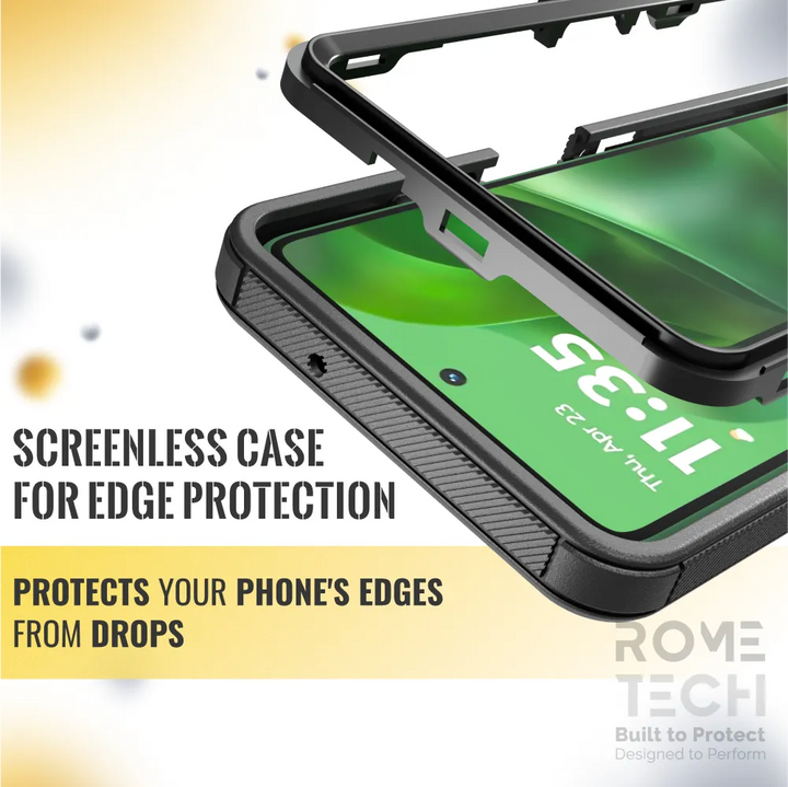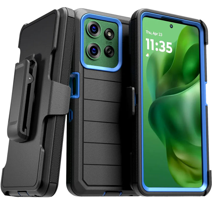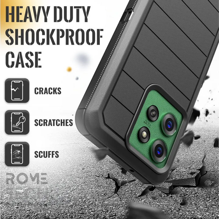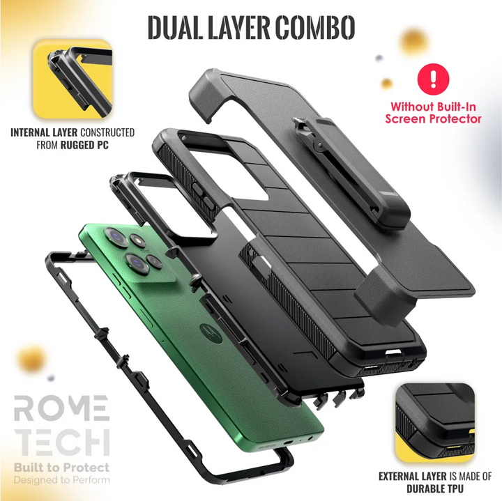 Protective Cases for Motorola Moto G Power a is four layers of 360-degree heavy-duty shockproof protection. Our defender case is made out of durable materials with a hard polycarbonate inner shell and soft outer rubber layer. Raised beveled edge keeps your touchscreen safe from scratches. A 360-degree swivel belt clip also functions as a kickstand with different viewing angles perfect for video calls and media playback. Defender case also have easy access to the charging port, buttons, sensors, and camera. Built-in port covers offer protection from dust, dirt, and other elements, making it ideal for commercial use. Rome Tech's Defender case multi-layer design offers rugged drop protection ideal for outdoor adventures, sports, hiking and guards your device against scrapes, bumps, dirt, and dust.