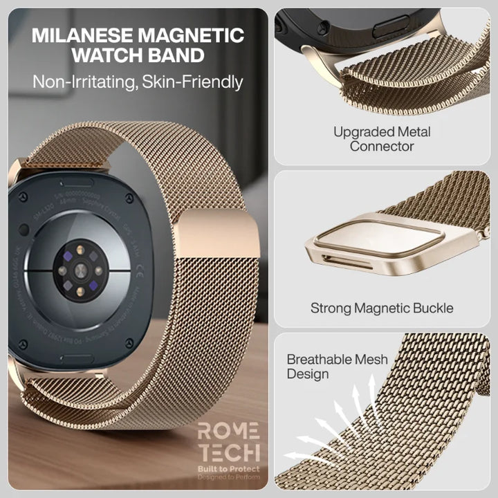 - • Starlight Milanese Loop – elegant stainless steel mesh with magnetic closure.